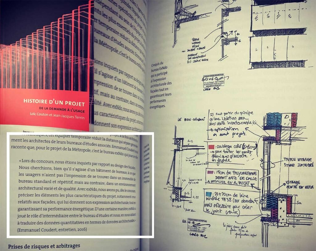 « Ce livre décrit le processus d’élaboration du siège de la Métropole Rouen Normandie par Jacques Ferrier et son équipe, depuis sa programmation jusqu’à sa réception. Il révèle les différentes compétences à l’œuvre tout au long de ce projet innovant et complexe. Il décrit le rôle de l’architecte et ses relations avec la maîtrise d’ouvrage, l’ingénierie et l’entreprise. Il met l’accent sur les relations humaines, les échanges, les négociations, et les représentations qui favorisent ces débats. À travers l’histoire de ce projet, c’est celle de toute une chaîne de compétences que ce livre raconte ».
